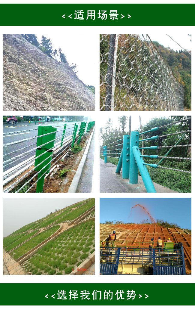 具有高柔性,高防护强度,易铺展性。适应任何坡面地形,安装程序标准化、系统化。
