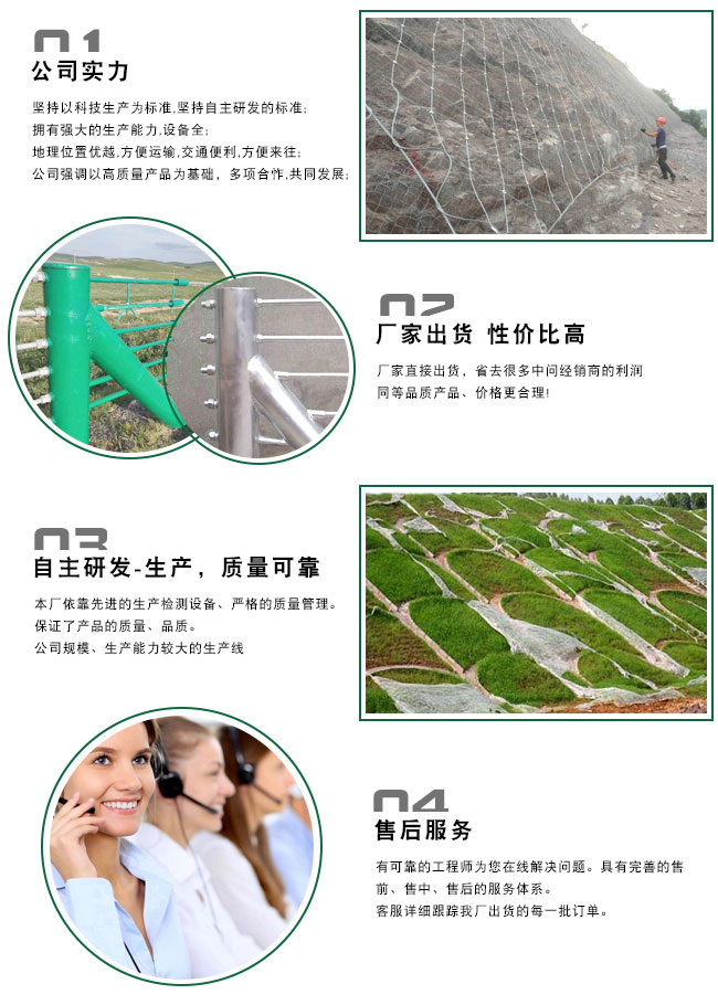 系统材料的特殊制造工艺和高防腐防锈技术,决定了系统的超高寿命。系统能将工程队环境的影响降到低点,其防护区域可以充分的保护土体、岩石的稳固,便于人工绿化,有利于环保。